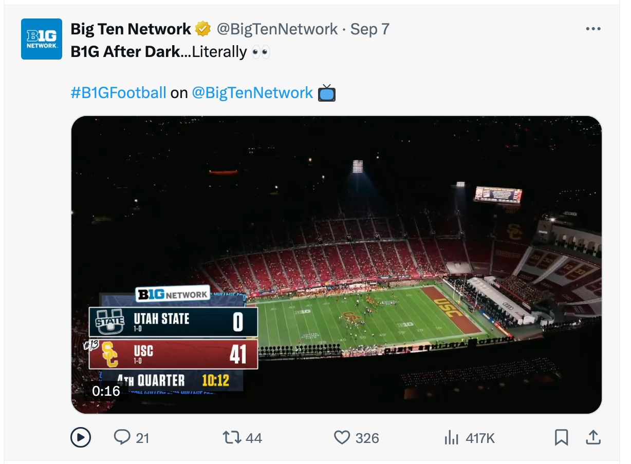 How are you feeling now that Big Ten play is here? I’ve found I still can’t shake my OG Pac-12 allegiances. My Saturday score-checking habits still include looking up and down the West Coast. Seeing things like this just doesn’t feel right.