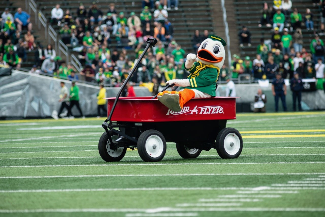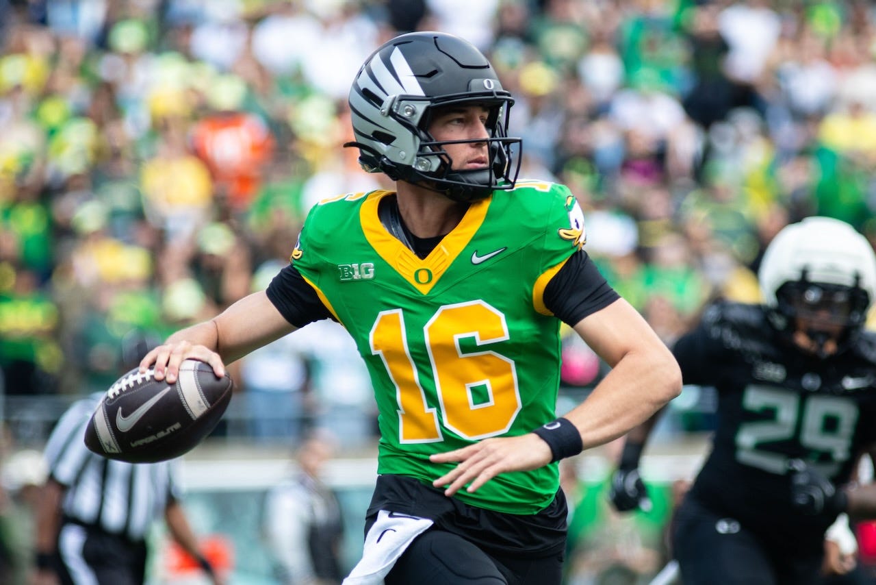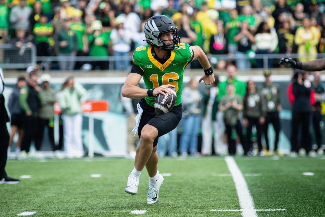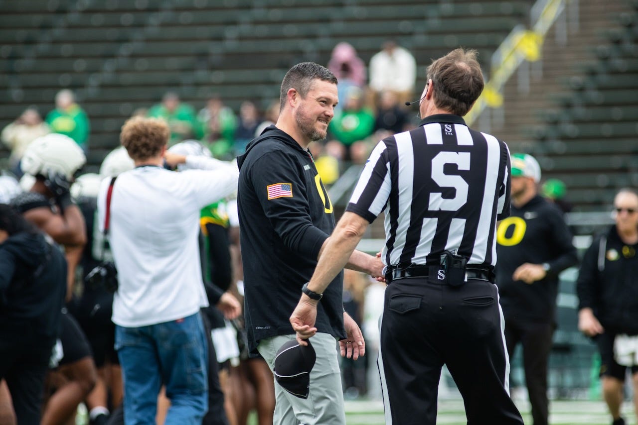 Officially, the Fighting Ducks defeated the Combat Ducks 24-20, with Dante Moore being intercepted on the game’s final play to secure the win for the FDs.