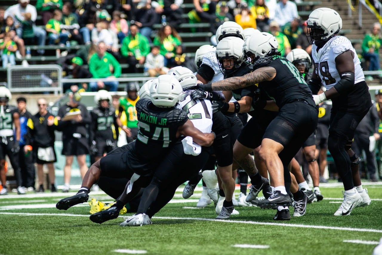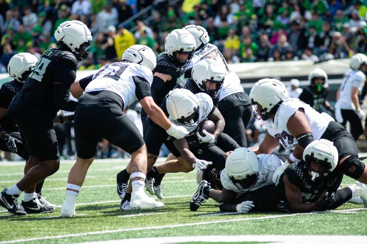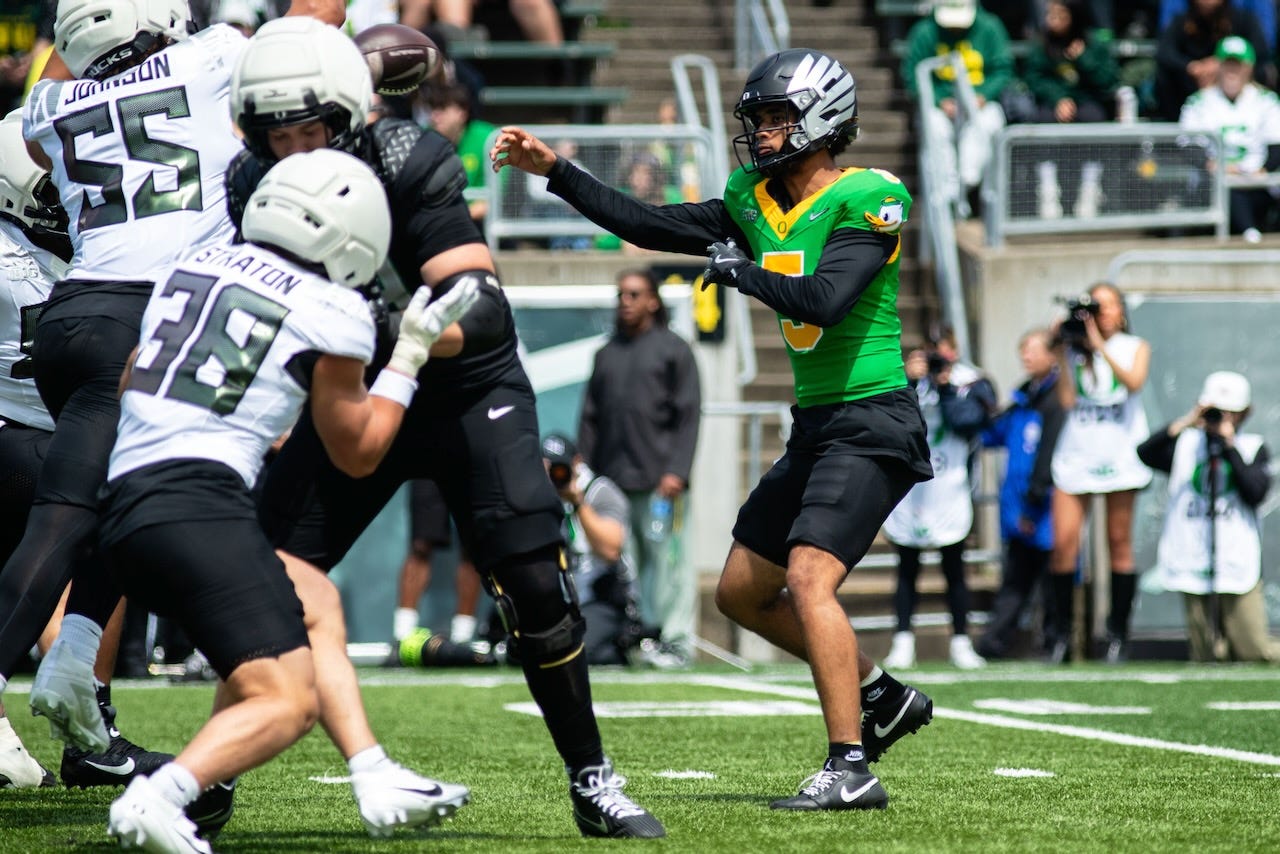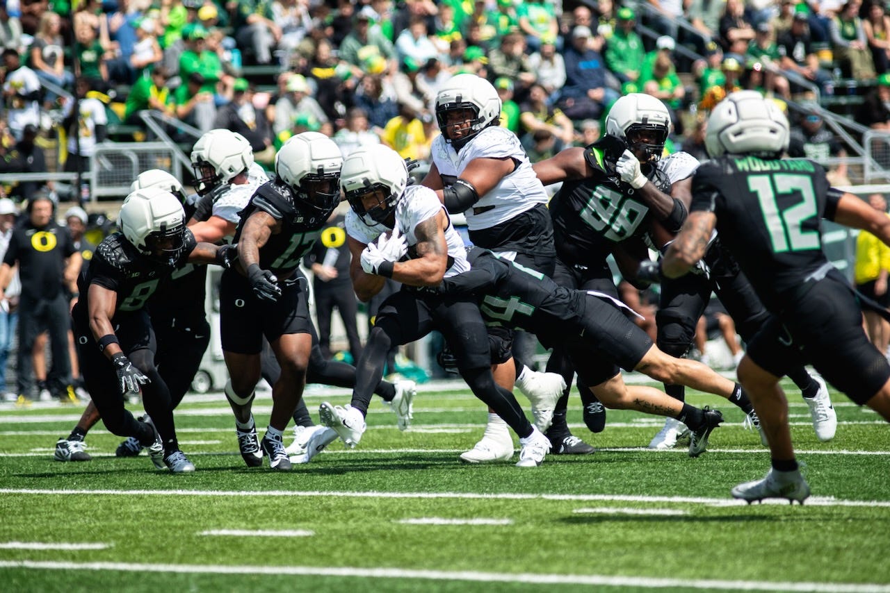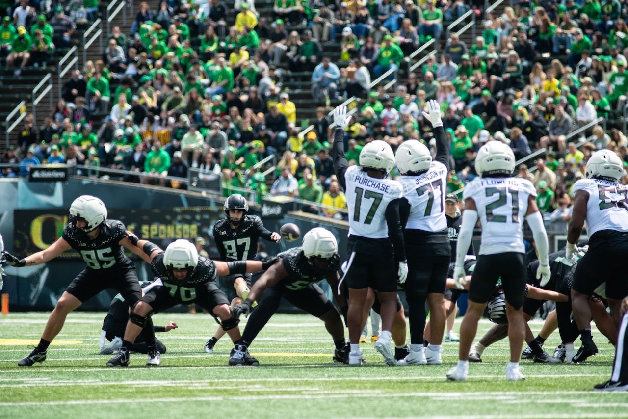 While former Oregon Ducks were busy putting on a show in the NFL Draft this weekend, the current version of Oregon’s roster was on full display Saturday at Autzen Stadium.