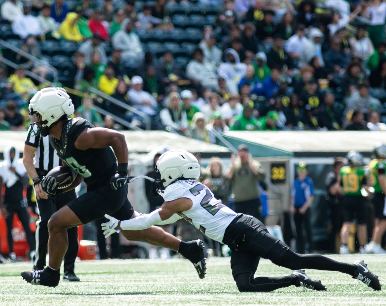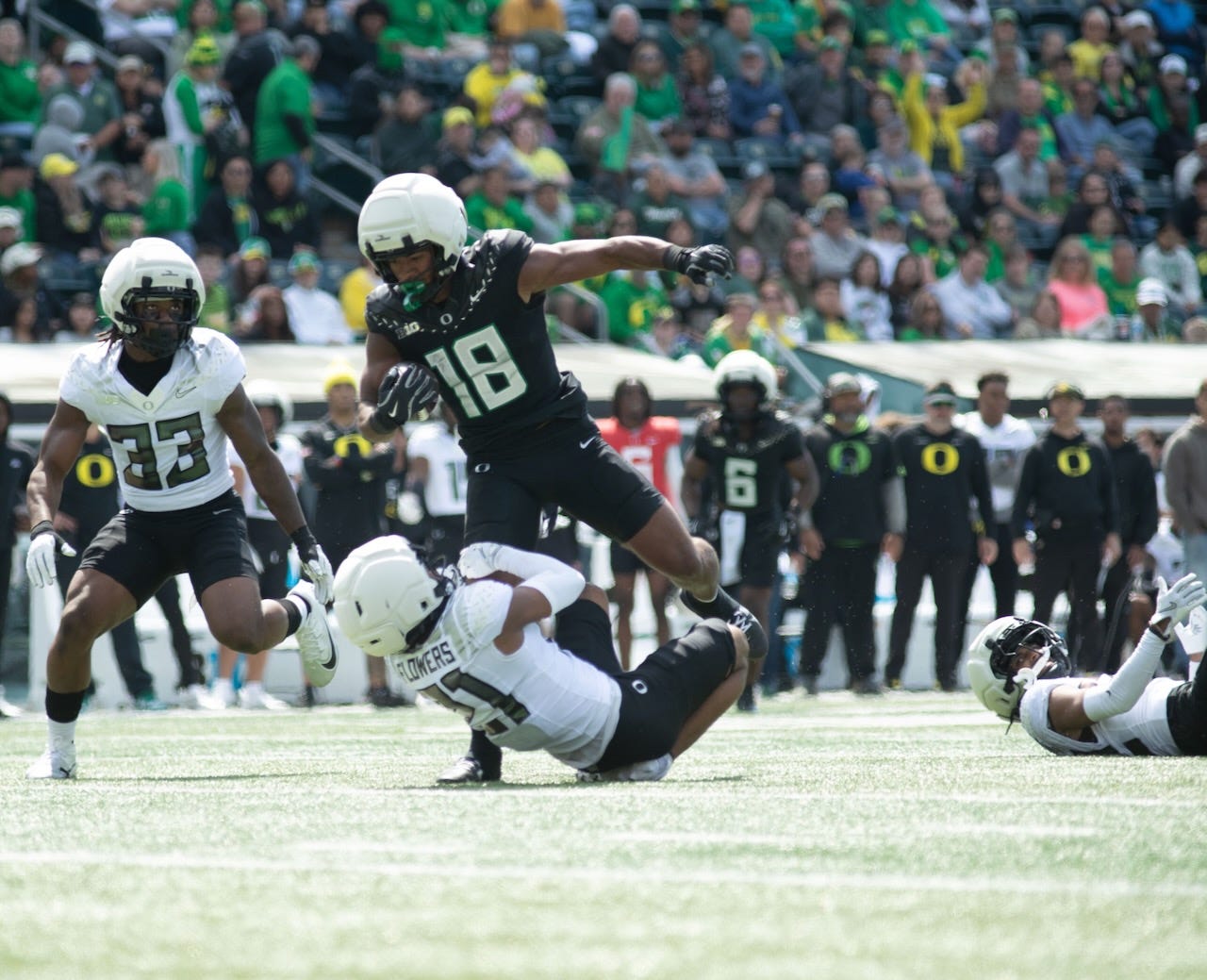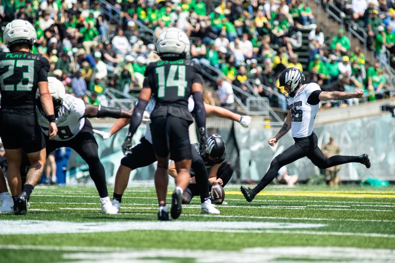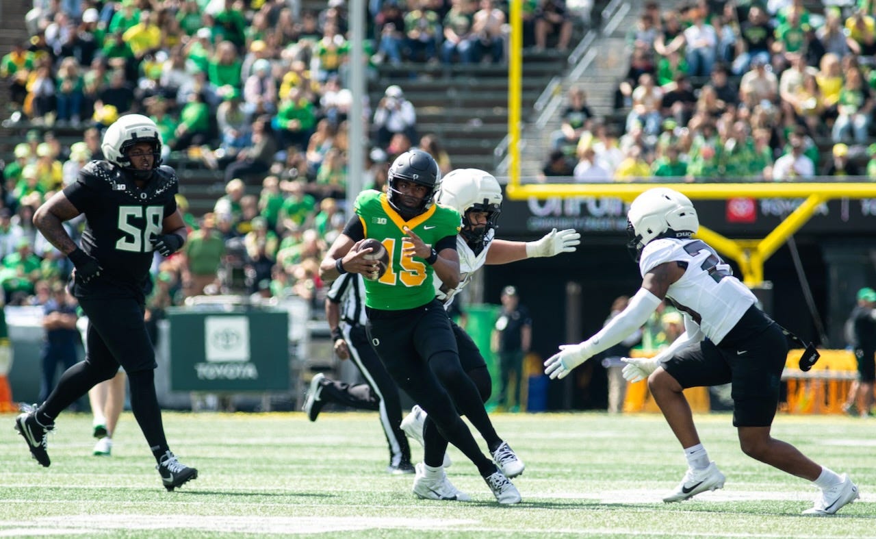 While former Oregon Ducks were busy putting on a show in the NFL Draft this weekend, the current version of Oregon’s roster was on full display Saturday at Autzen Stadium.