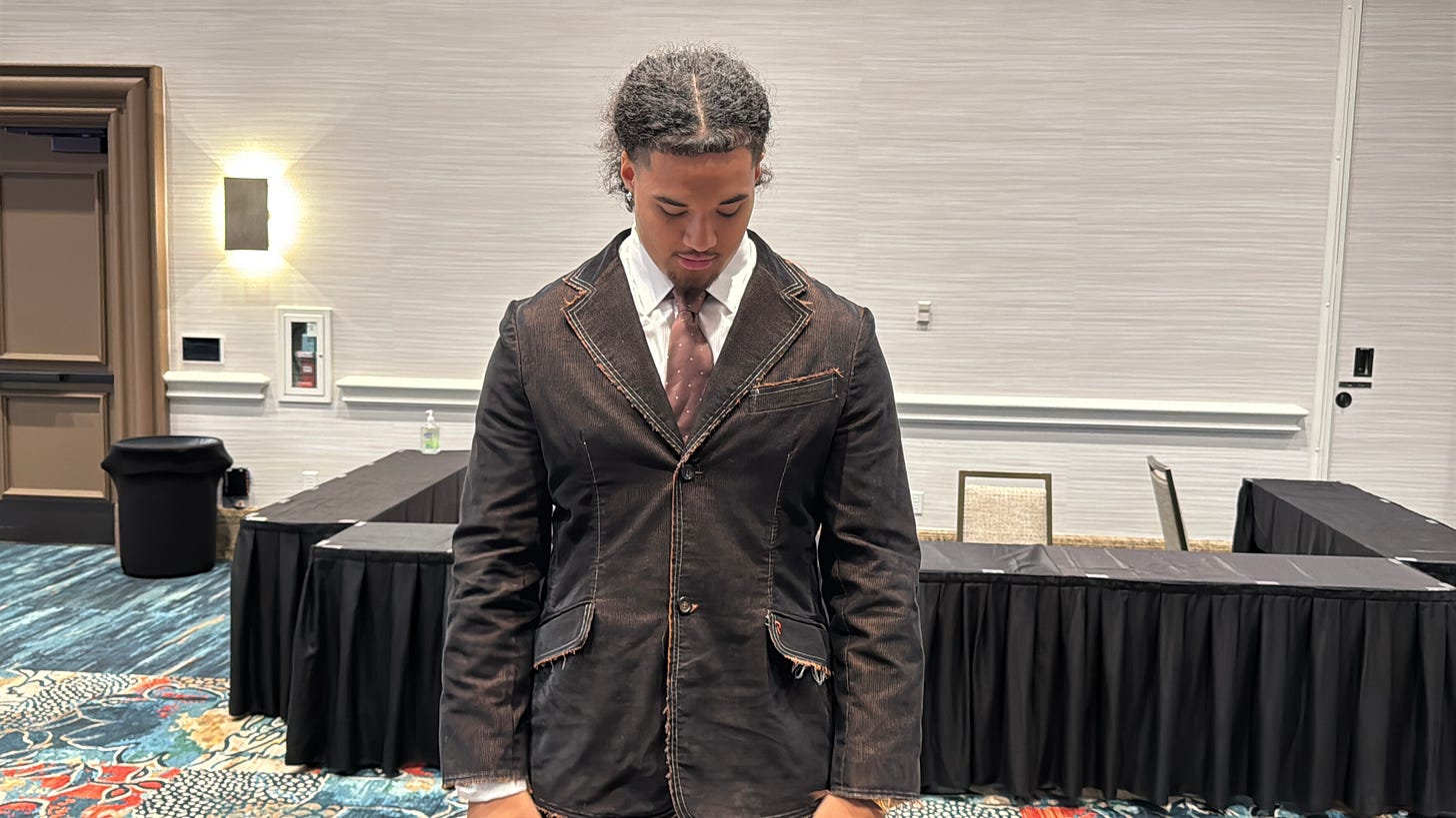 “I brought every jacket and dress pants that I own,” said the 20-year-old junior. “I didn’t know what to wear. I never really had to wear a suit until I got to college.”