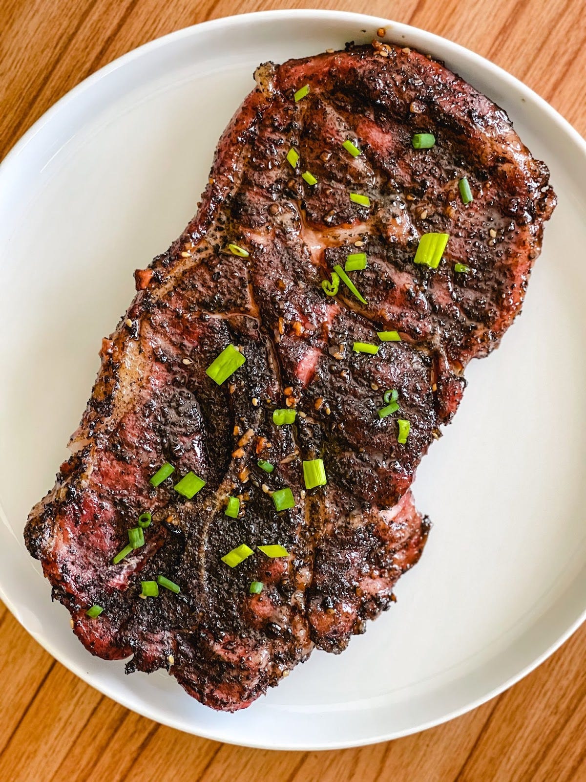 Okkkkk, so that’s been a lot of food! But it’s a longggg day. We need dinner. And in today’s economy, the best value at the butcher is the pork steak. Cut from the pork shoulder, this is the cut that normally gets turned into pulled pork, but we are slicing 1-1.5” thick slices, and grilling them until they turn SO tender it rivals the juiciest ribeye you’ve ever had. We’re getting close to kickoff here, so we are going to keep it super simple. Salt, pepper, and just a splash of soy sauce as it cooks for an extra layer of flavor!