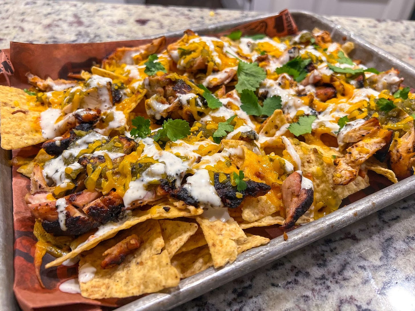 Sheet Pan Adobo Grilled Chicken Nachos w/ Alabama White Sauce