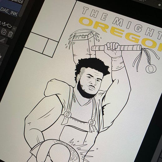 You’ve likely seen Dan Boyer’s work, whether it be from his animated shorts on Oregon’s social accounts before games or through his illustrations of the latest Oregon Duck book. I was particularly fond of the time he posted this Autzen Stadium replication from Animal Crossing. I milked a whole story out of it.